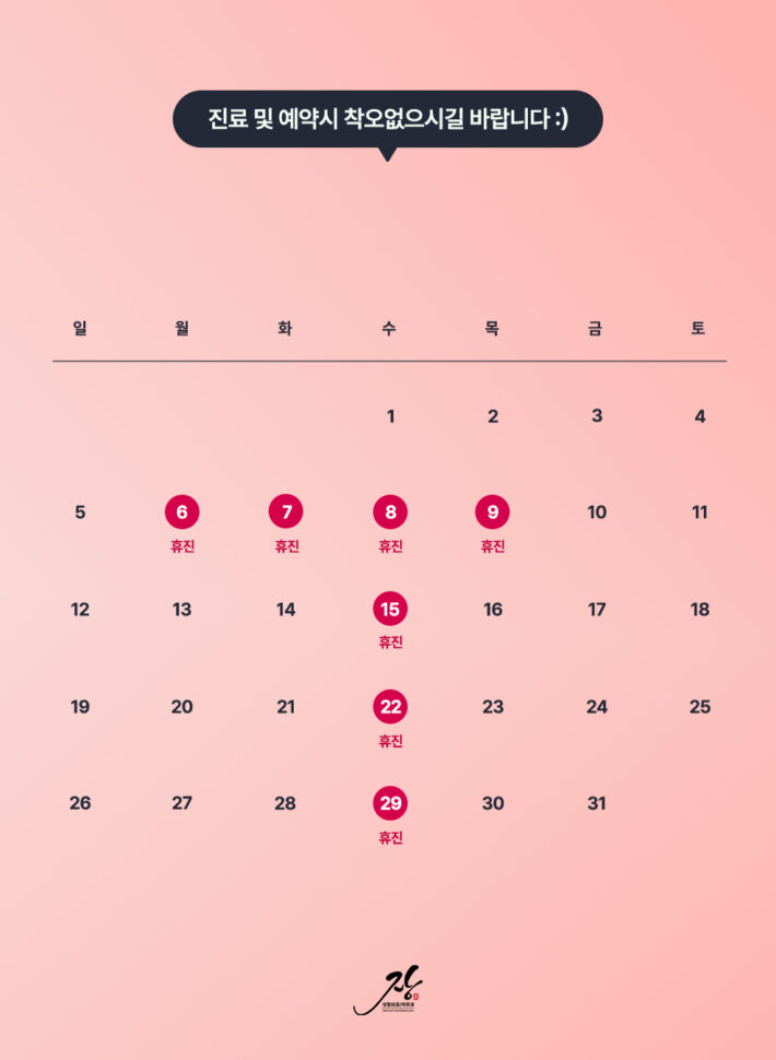 * 공휴일 있는 주는 수요일 대체진료 입니다.